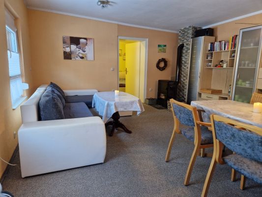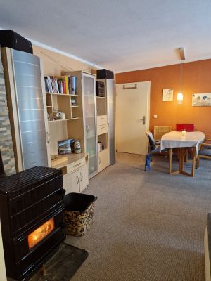 - einen gemütlichen Wohnbereich mit Dauerbrandofen