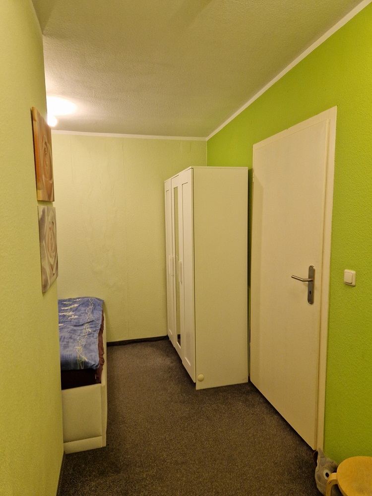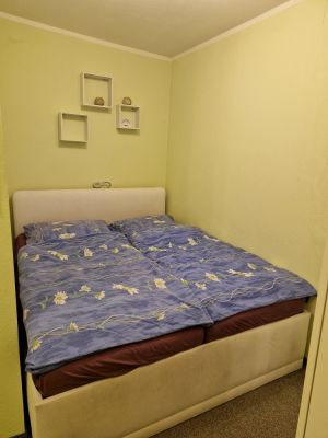 Obwohl das Bett nur 140 cm breit ist, kann aus dem in einer Nische stehenden Bett niemand heraus fallen. ;-)
