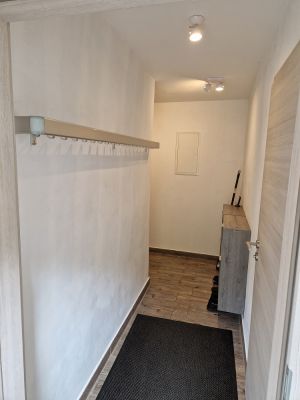 Der helle und mit einer großzügigen Garderobe ausgestattete Flur empfängt Sie freundlich und die Schuhschränke sorgen für die nötige Ordnung während des Aufenthalts.