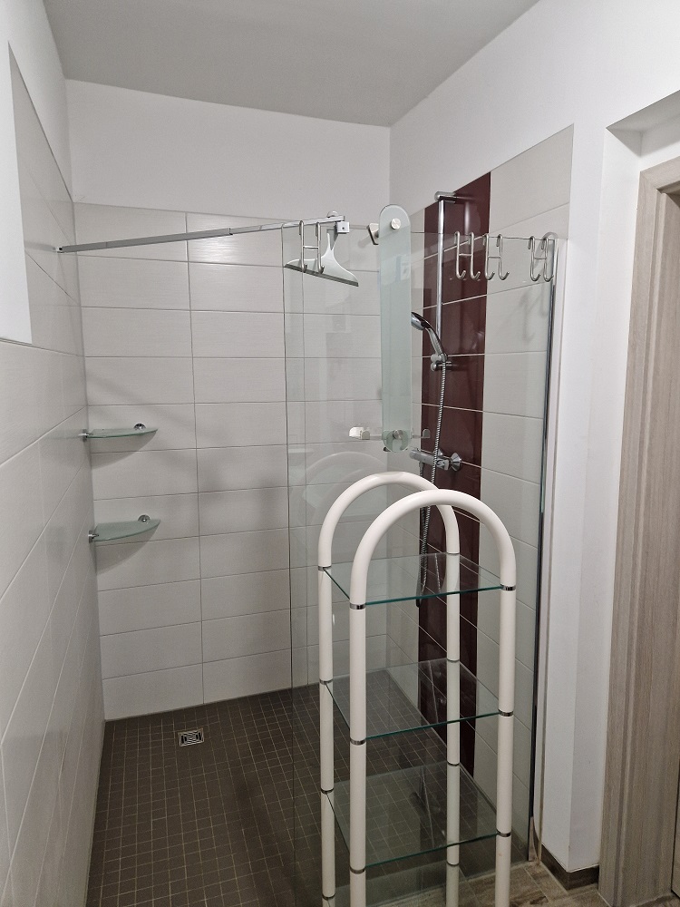 - ein modernes, helles Bad mit bodengleicher Dusche