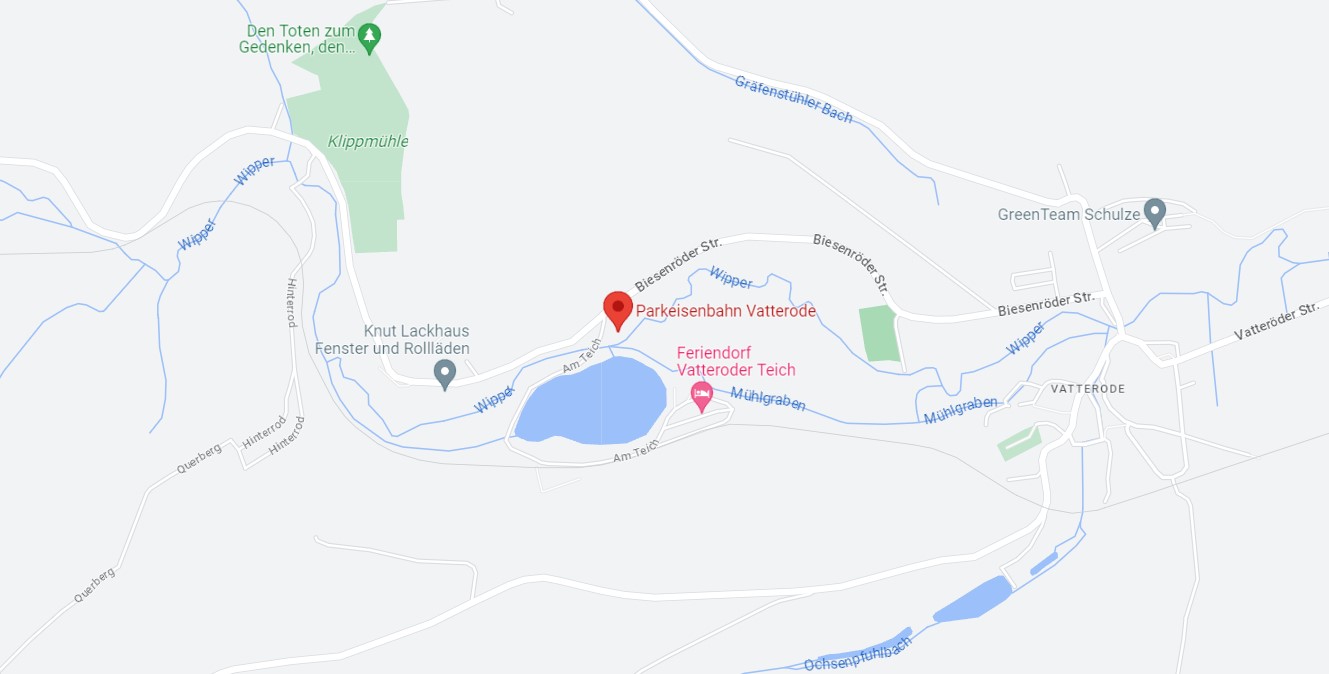 Am Ortsausgang befindet sich bereits unser "Bf. Wippergrund". Da wir hier keine Parkmöglichkeiten haben, folgen Sie bitte der Straße 1km und Sie erreichen unseren Parkplatz am "Bf. Mansfeld Schleife".
